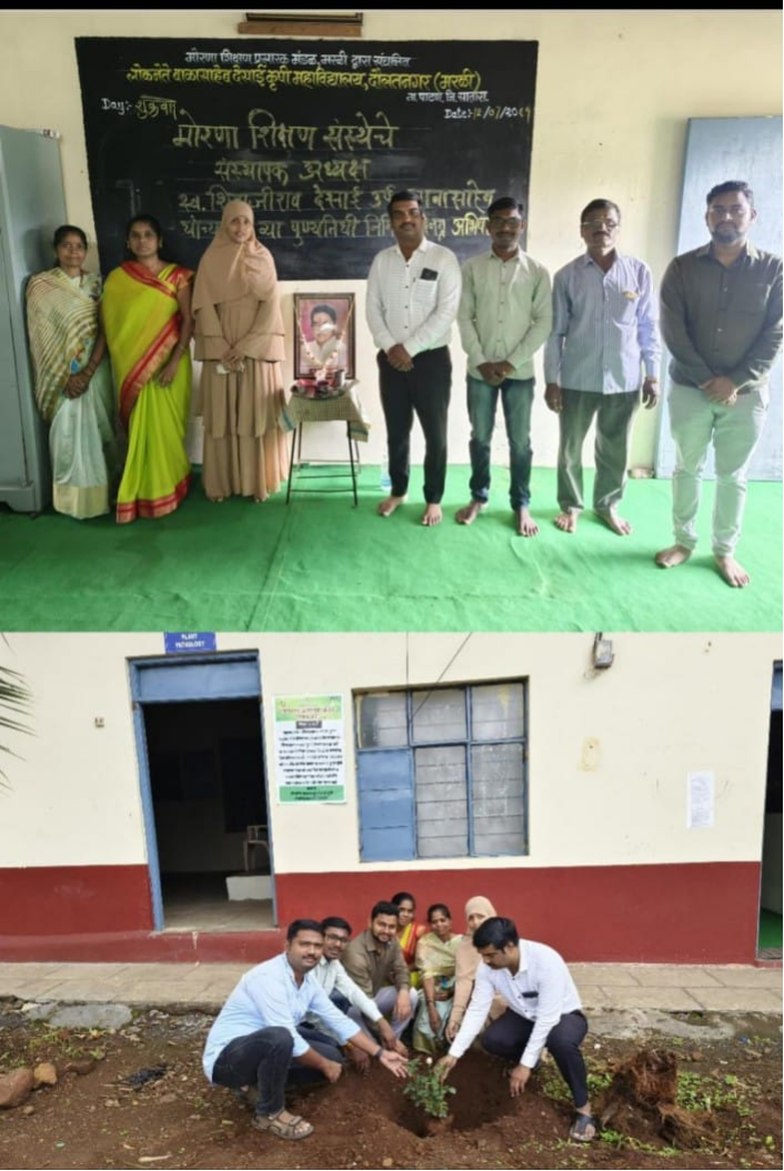 दिनांक: १२ जुलै २०२४- मोरणा शिक्षण संस्थेचे संस्थापक अध्यक्ष स्व.शिवाजीराव देसाई उर्फ आबासाहेब यांची 38 वी पुण्यतिथी लोकनेते बाळासाहेब देसाई कृषि महाविद्यालयामध्ये मोठ्या उत्साहात साजरी करून कृषि महाविद्यालय प्रांगणात वृक्षारोपण करण्यात आले.यावेळी कृषी महाविद्यालयाचे प्राचार्य डॉ. शिंदे सर ,शिक्षक व शिक्षकेत्तर कर्मचारी उपस्थित होते.